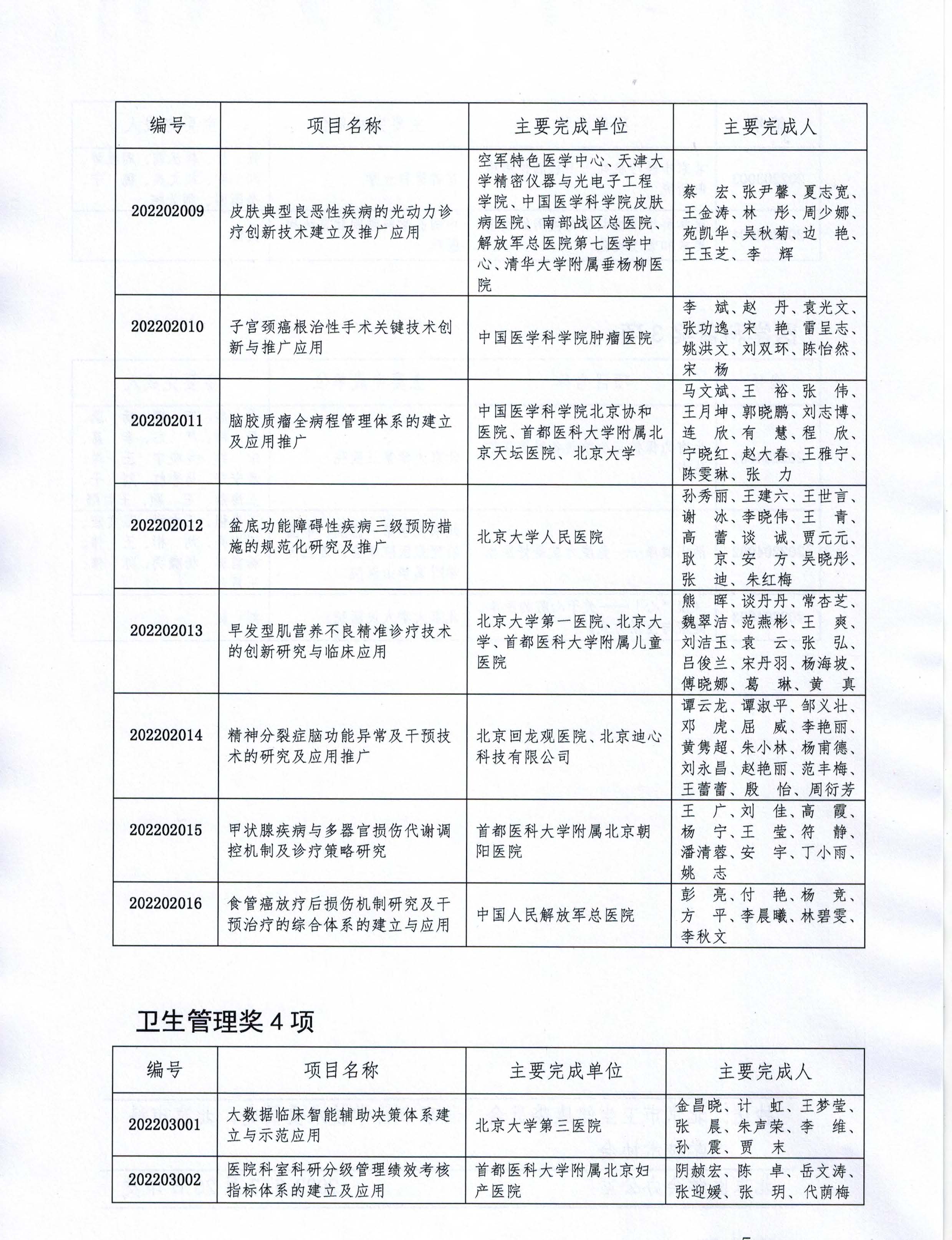 北京医学会五项推荐项目荣获2018年度中华医学科技奖